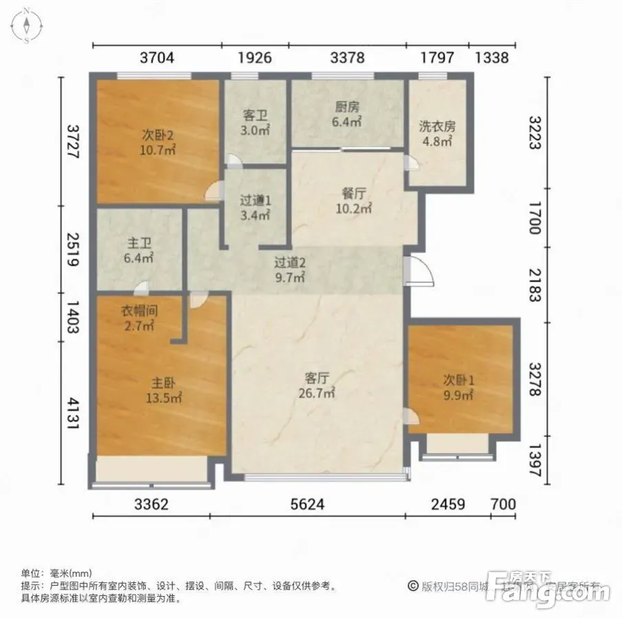 户型齐全,主打南北通透,客厅朝南三居