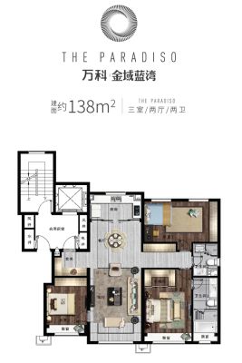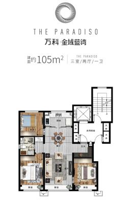 万科金域蓝湾户型主要有105平-143平的南北通透,客厅朝南的三居 、138平-138平的南北通透,客厅朝南的四居 。