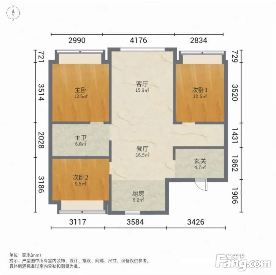 户型齐全,主打南北通透,客厅朝南三居