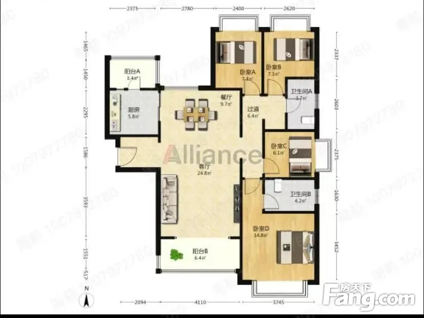 正规的4房,南北通透的格局