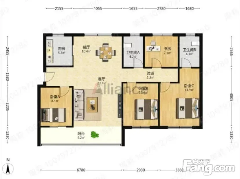 稀缺王炸户型,南北通透的4房 落地大阳台 每个房间带独立飘窗