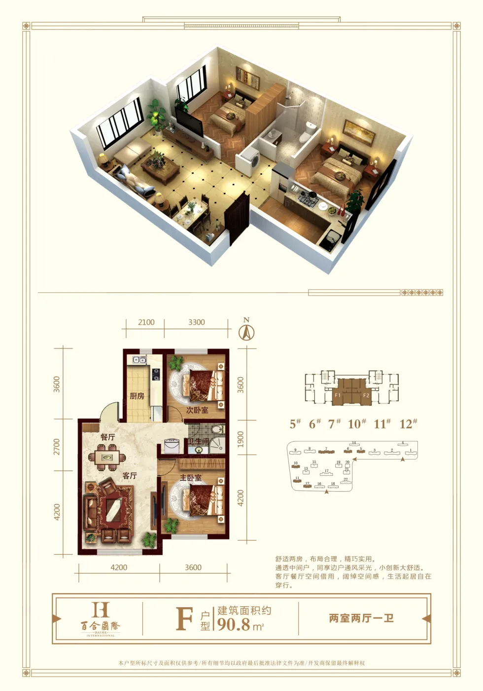 百合国际 精装电梯楼 2室明厅