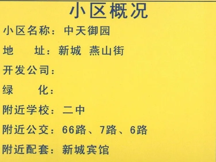 小区中天御园(新城区-二中)