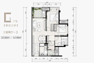 沙坪坝万科招商理想城 3室2厅2卫 横厅