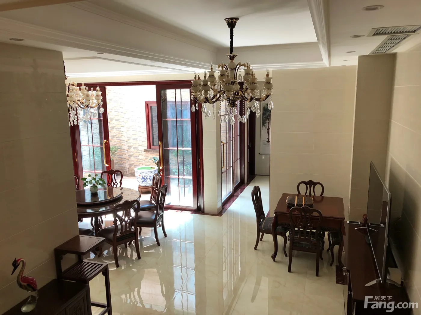 总共三层楼,实用面积400平左右,豪华装修,家具家电八九层新,房屋干净整洁,带前后两个庭院(后庭院含儿童游乐设施),带车库1个,因外地定居极少居住,亏本出售