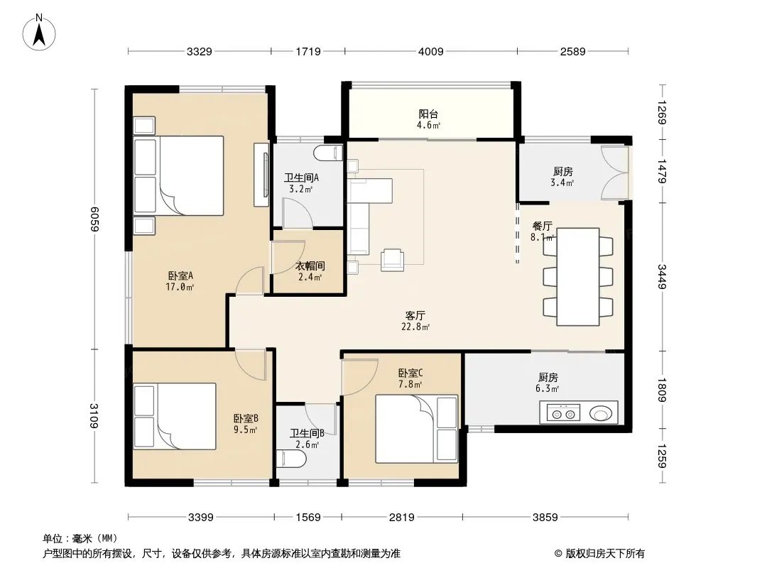 户型齐全,主打户型方正,明厨,双卧朝南三居