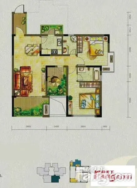 户型齐全,主打户型方正,明卫三居