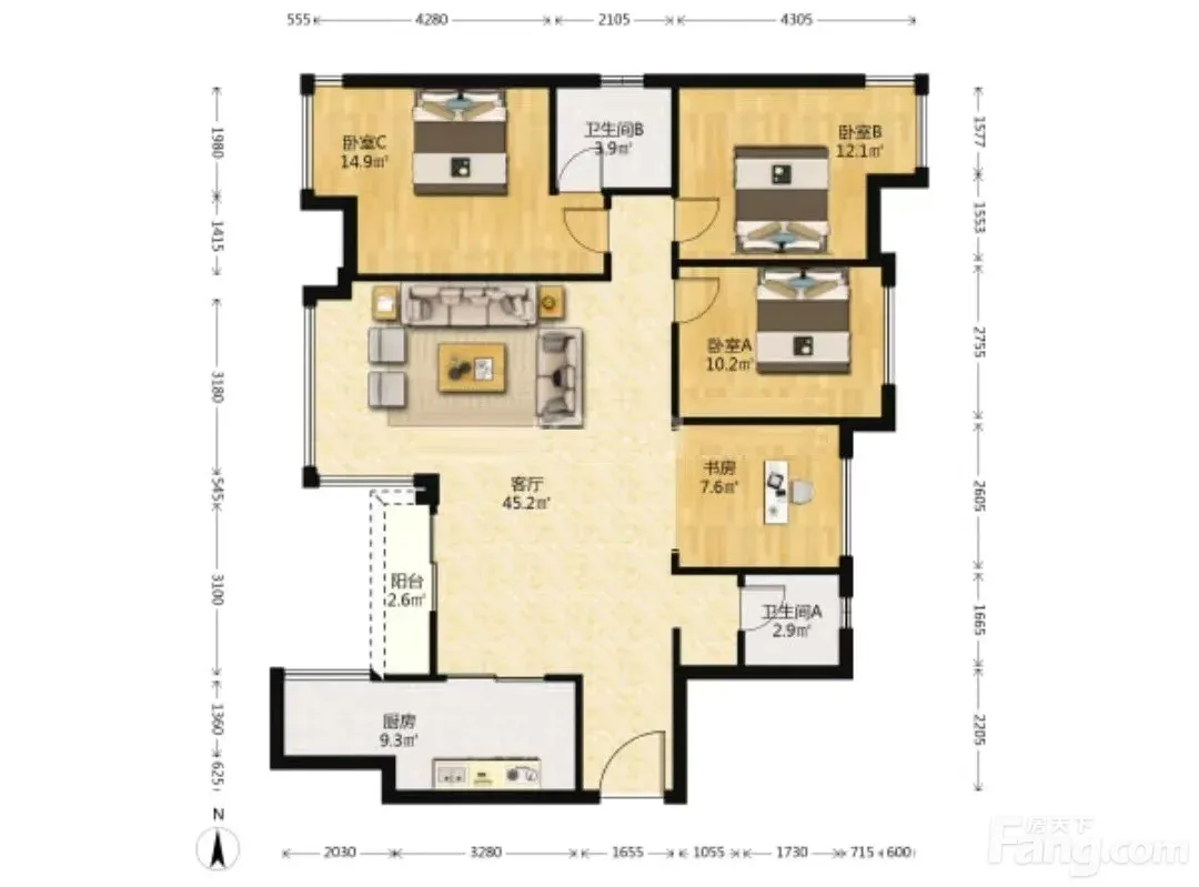 户型齐全,主打全明格局,动静分离,双阳台三居