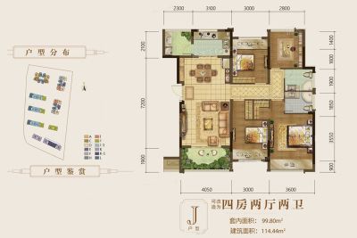 户型齐全,主打户型方正,动静分离,主卧带卫三居