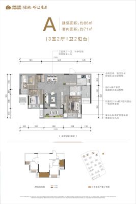 绿地听江左岸户型主要有86平-101平的全明格局,户型方正的三居 、115平-139平的全明格局,户型方正的四居 。