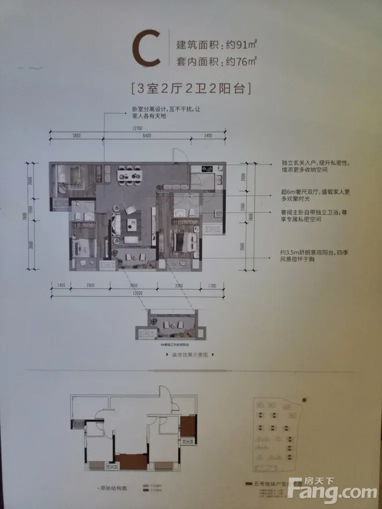 户型齐全,主打全明格局,户型方正三居