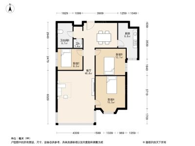 户型齐全,主打客厅朝南三居