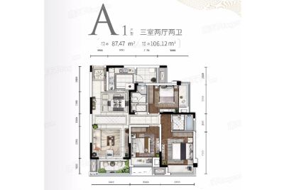 巴南 洺悦城 3室2厅 106.13㎡ 99.80万