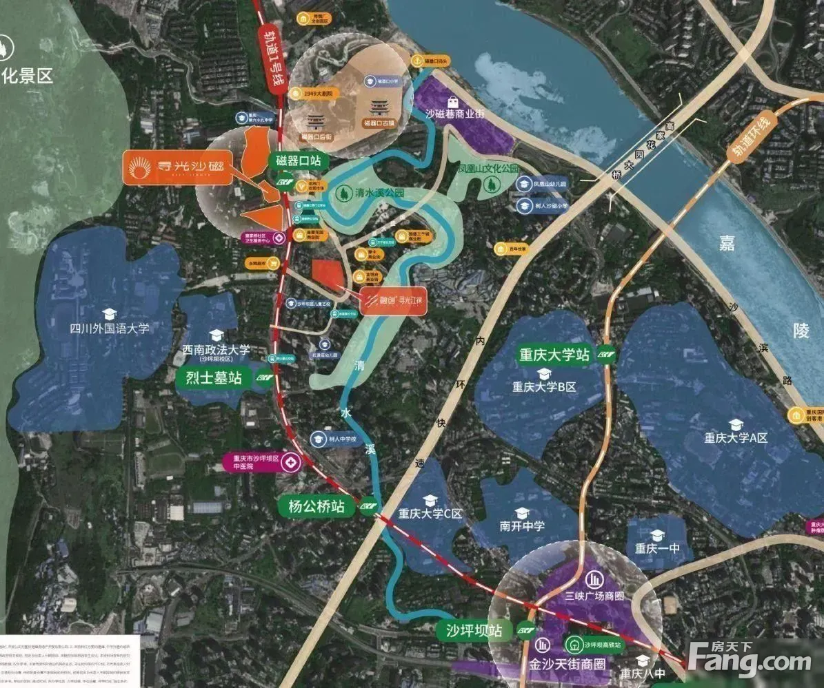项目卖点: 1、【沙区双轻轨】 沙区核芯区品质双轻轨住宅(1号/27号线100米) 2、【网红景区】 城市名片磁器口景区旁,限量珍藏,轻奢小高层; 3、【商圈】 轻轨两站三峡广场;六站大坪天街;享城市繁华 价值:大值得信赖 4、【——融创中国】 内地具实力的综合型发展商之一 连续4年稳居中国房企第四,重庆连续5年 5、公园配套: 四公园环伺,享受城市绿肺 歌乐山森林公园、清水溪公园、凤凰山文化公园和磁器口古镇