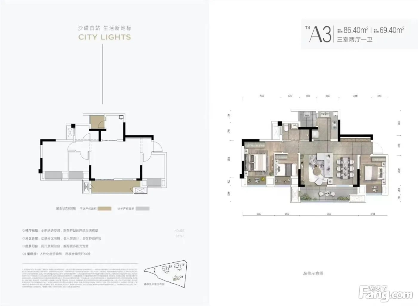 面积86-96平,横厅三房 总高18层,2梯4户,容积率2.1