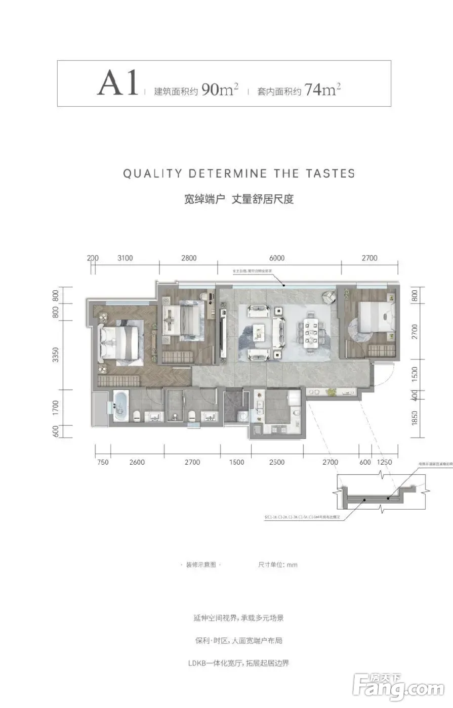 清水小高:建面90-95㎡,3房2厅2卫 臻装小高:建面130平,大横厅4房2厅2卫