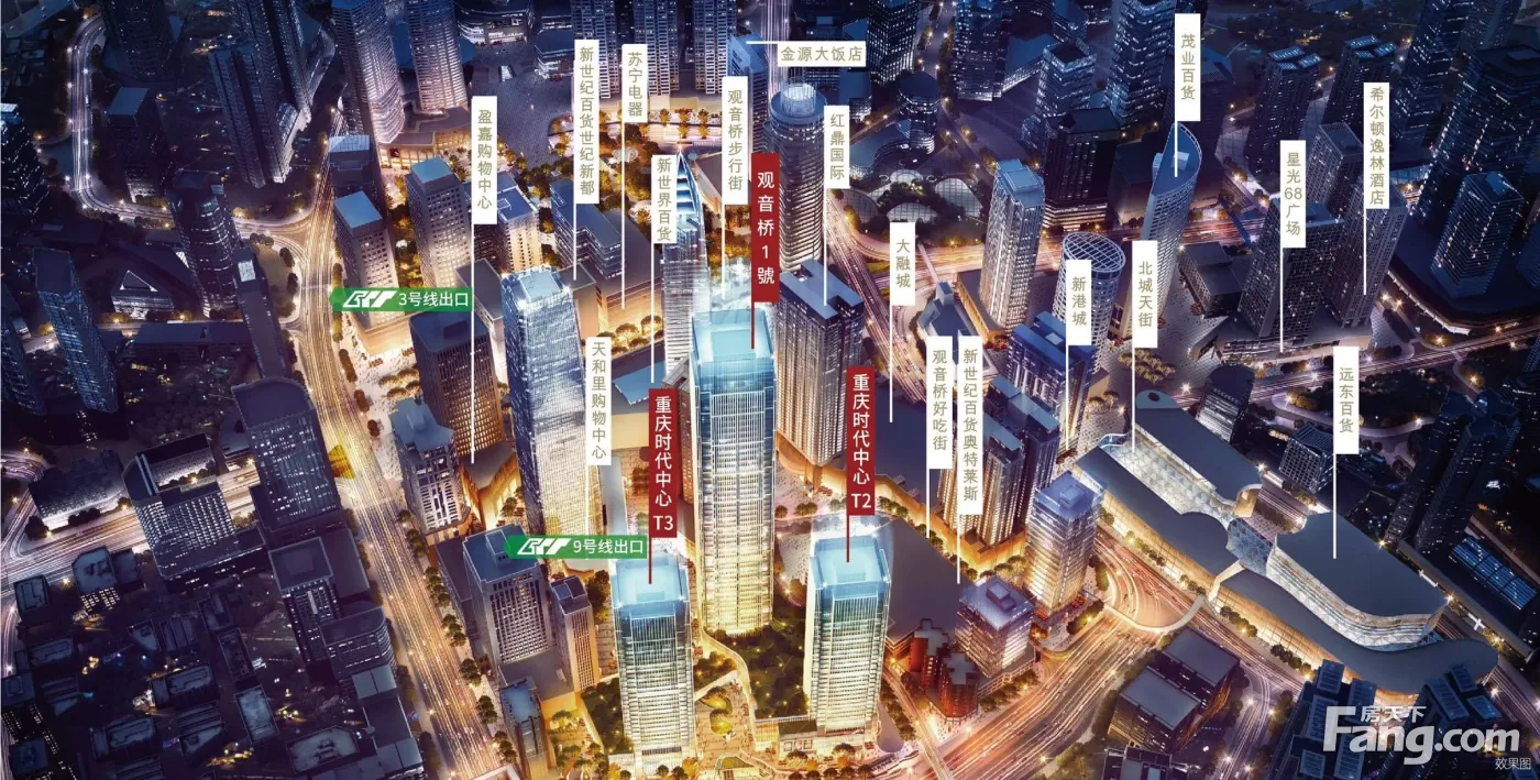 (装修标准6000㎡)观音桥地标豪宅,全玻璃幕墙,楼下双轻轨