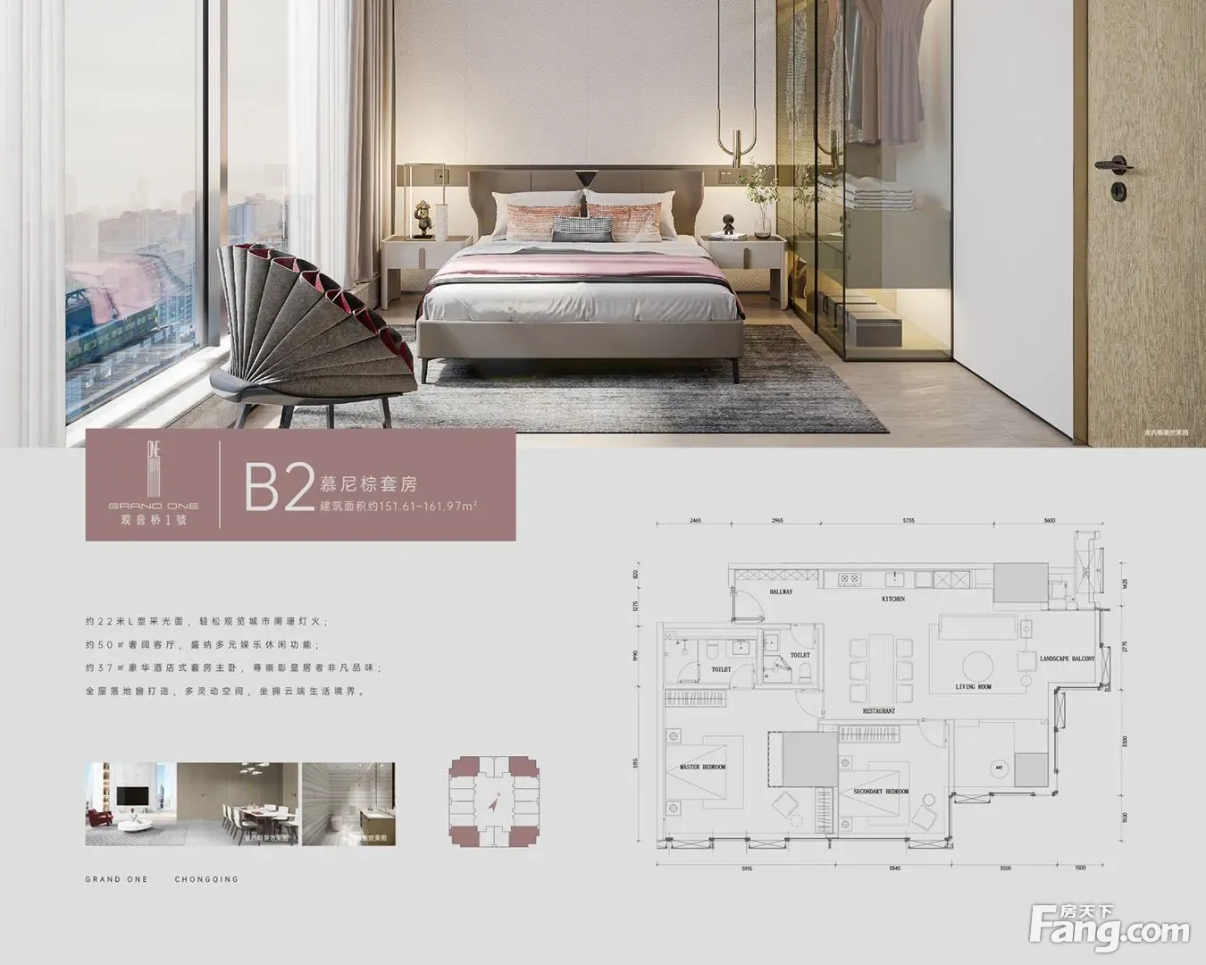 五大购买理由: ①西南商圈,五大商圈之首,城市最后的真核心,坐拥千亿级商圈约260万方步行街,享尽城市最优资源 ②观音桥步行街再无新地供应,商圈内15年来豪宅产品,其稀缺性不言而喻,观音桥住宅高楼,全公建化外立面落地玻璃幕墙,天际豪宅,尽拦繁华 ③三大国际设计团队联袂打造,上海汤臣一品豪宅,原班设计团队倾力打造步行街地标豪宅 ④(3、6、9、10号)轻轨无缝接驳,约40多条公交线路轻松换乘 ⑤3大业主私享会所、6大精装大堂,约3000㎡会所、约12米挑空五星级精装入户大堂、礼宾门童、铂金管家,全石材铺装、全屋德系定制家具