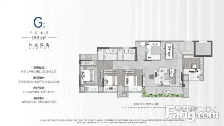 在售户型: 建面93㎡-117㎡,3室2厅2卫、4室2厅2卫 跃顶建面120-136㎡,4室2厅3卫,50㎡左右露台