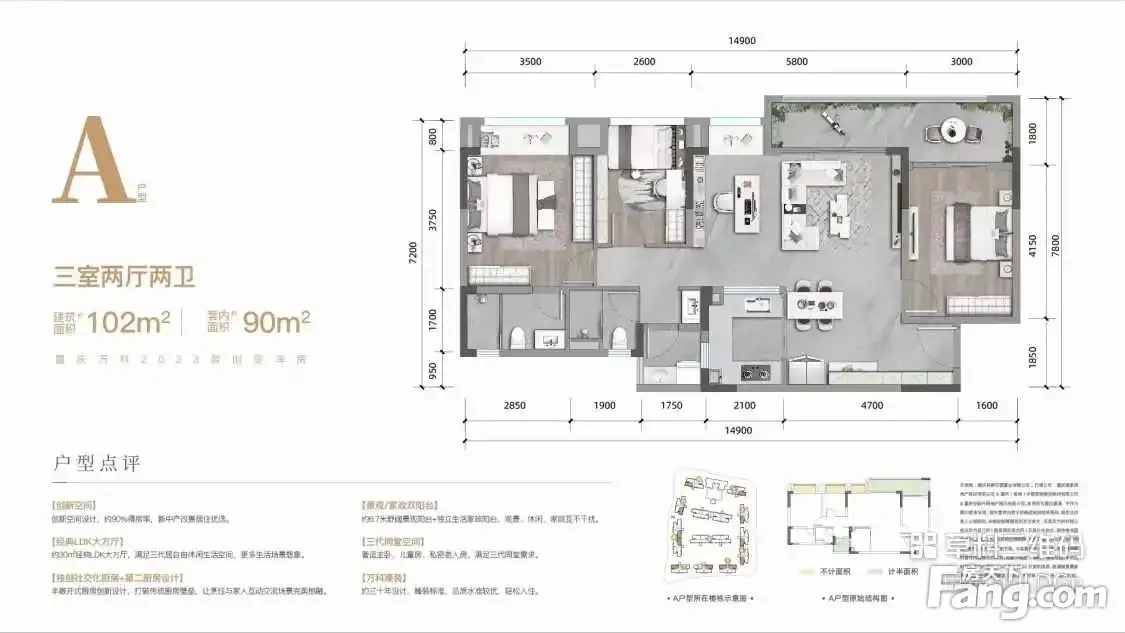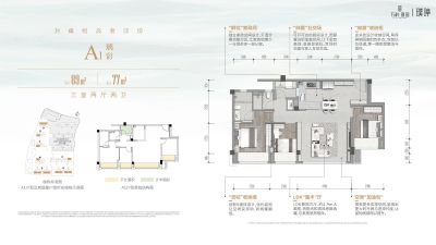 户型齐全,主打户型方正,开放厨房三居