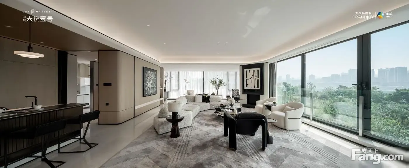 北滨路中粮天悦壹号,板式洋房大平层一线临江,全玻璃幕墙