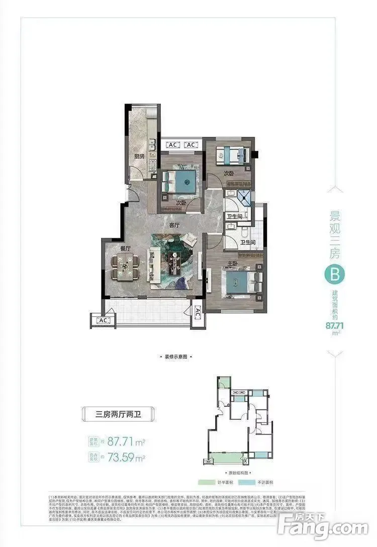 美好·天赋户型主要有87平-87平的全明格局,户型方正的三居 、99平-99平的全明格局,户型方正的四居 。