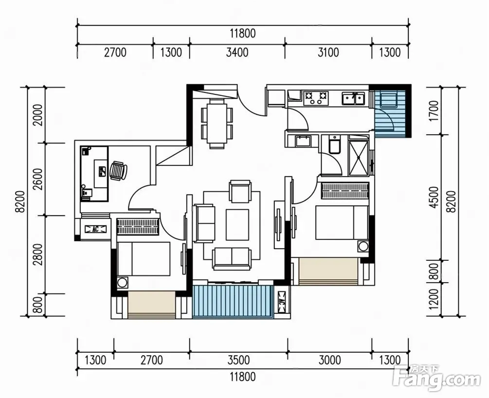 格力两江总部公园3期户型主要有78平-95平的全明格局,户型方正的三居 、57平-68平的户型方正,动静分离,采光充足的二居 。