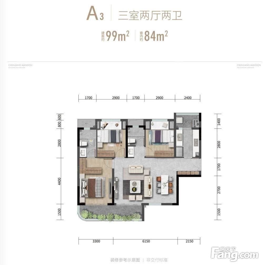 户型齐全,主打全明格局,采光充足三居