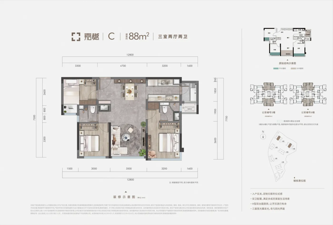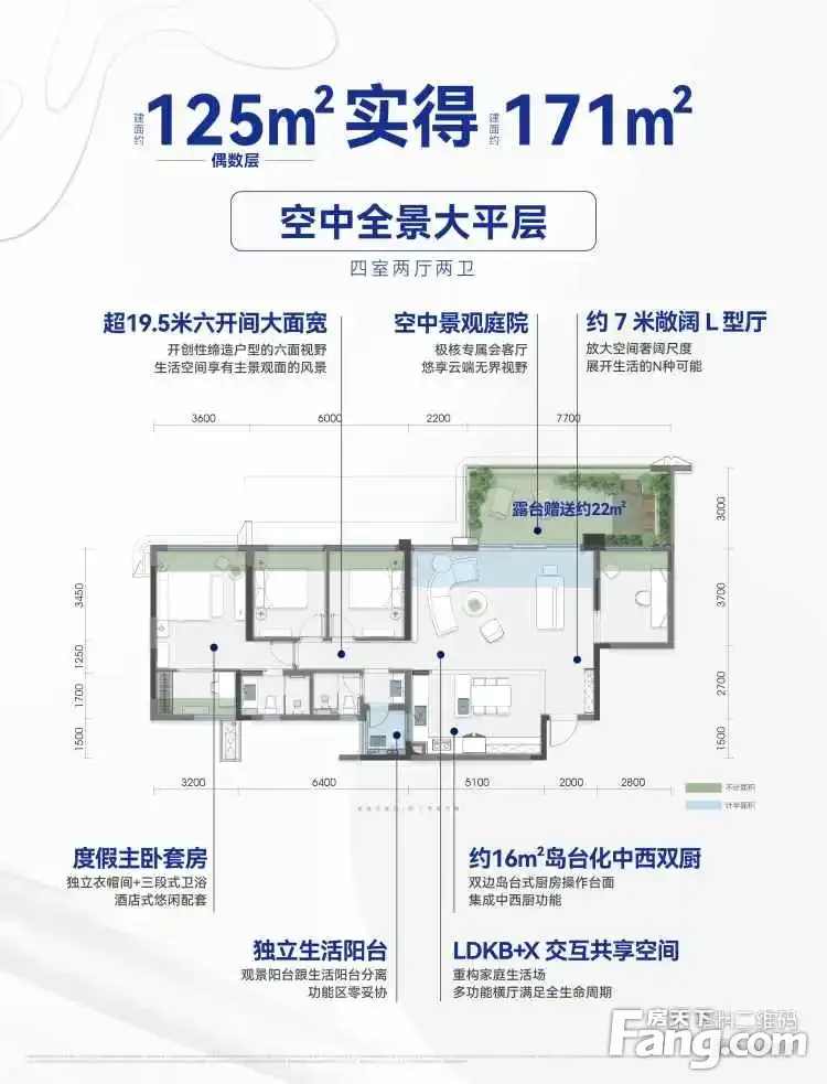核心优势+卖点合集 1、联发TOP级产品,豪宅典范,一城仅此一座 2、观音桥2.25低容积率四代宅,16栋围合式布局大社区 3、约1000㎡无边际游泳池,1300㎡架空层打造城市天际豪宅会所 4、约680m归家圆环,五大海岛度假花园,11处林下无界空间 5、全景落地玻璃幕墙+香槟金色铝板线条+0.55窗墙比 6、豪华主卧套房+户户带6.3米空中花园,约19m景观大面宽 7、建面125-185㎡得房率高达110-120%,实际使用面积171-248㎡ 8、配套:幼儿园+两江国际(嘉澍小學+宏帆8中管理校) 9、1公里黄金生活圈:蚂蟥梁站200米+中环万象城约1公里(在建)