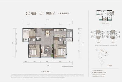 户型齐全,主打户型方正,动静分离三居