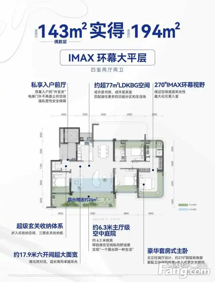 核心优势+卖点合集 1、联发TOP级产品,豪宅典范,一城仅此一座 2、观音桥2.25低容积率四代宅,16栋围合式布局大社区 3、约1000㎡无边际游泳池,1300㎡架空层打造城市天际豪宅会所 4、约680m归家圆环,五大海岛度假花园,11处林下无界空间 5、全景落地玻璃幕墙+香槟金色铝板线条+0.55窗墙比 6、豪华主卧套房+户户带6.3米空中花园,约19m景观大面宽 7、建面125-185㎡得房率高达110-120%,实际使用面积171-248㎡ 8、配套:幼儿园+两江国际(嘉澍小學+宏帆8中管理校) 9、1公里黄金生活圈:蚂蟥梁站200米+中环万象城约1公里(在建)