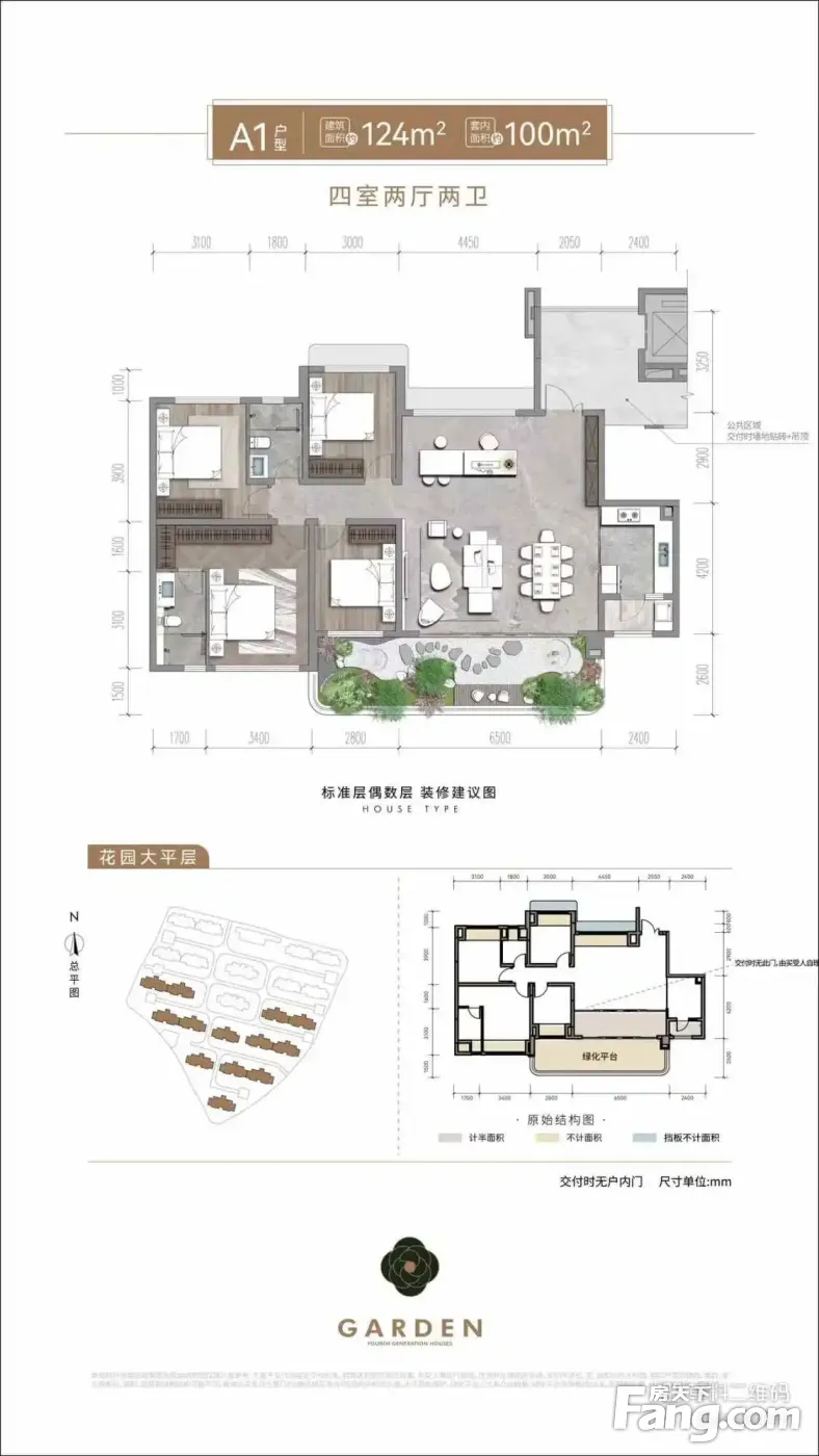 在售建筑面积: 122、124、134、136、143平 实际使用面积: 157、157、166、163、191平 1楼带花园信息 1楼大花园面积120-193平 小高层:总高15层;2T2H