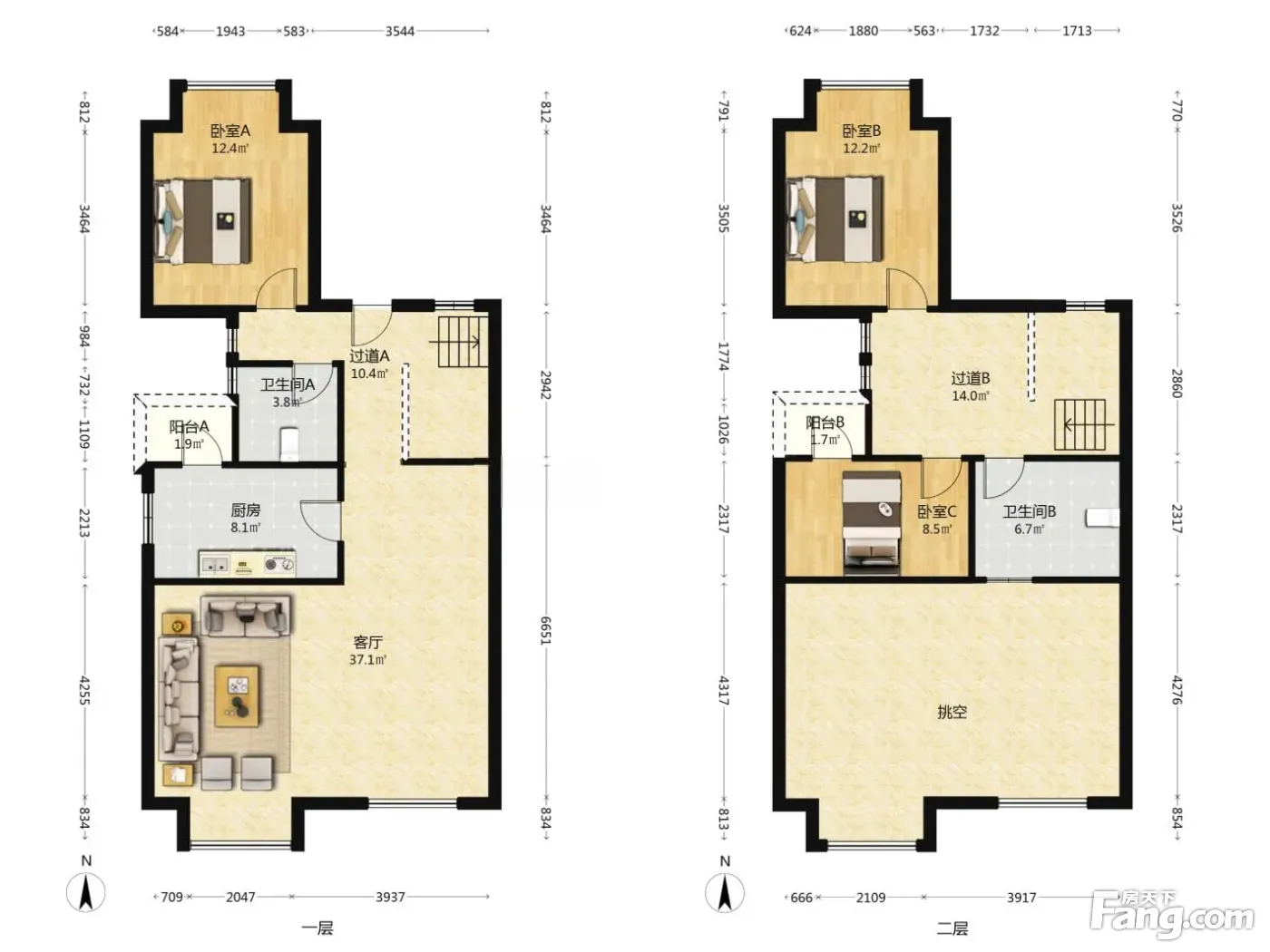 叠拼叠下端户,横厅设计,带三方花园 负一楼:6米的挑高,可以浇灌两层实用 一楼:横厅设计的餐客厅+老人套卧+厨房+三方花园150平 二楼:一个主卧套+两个卧室