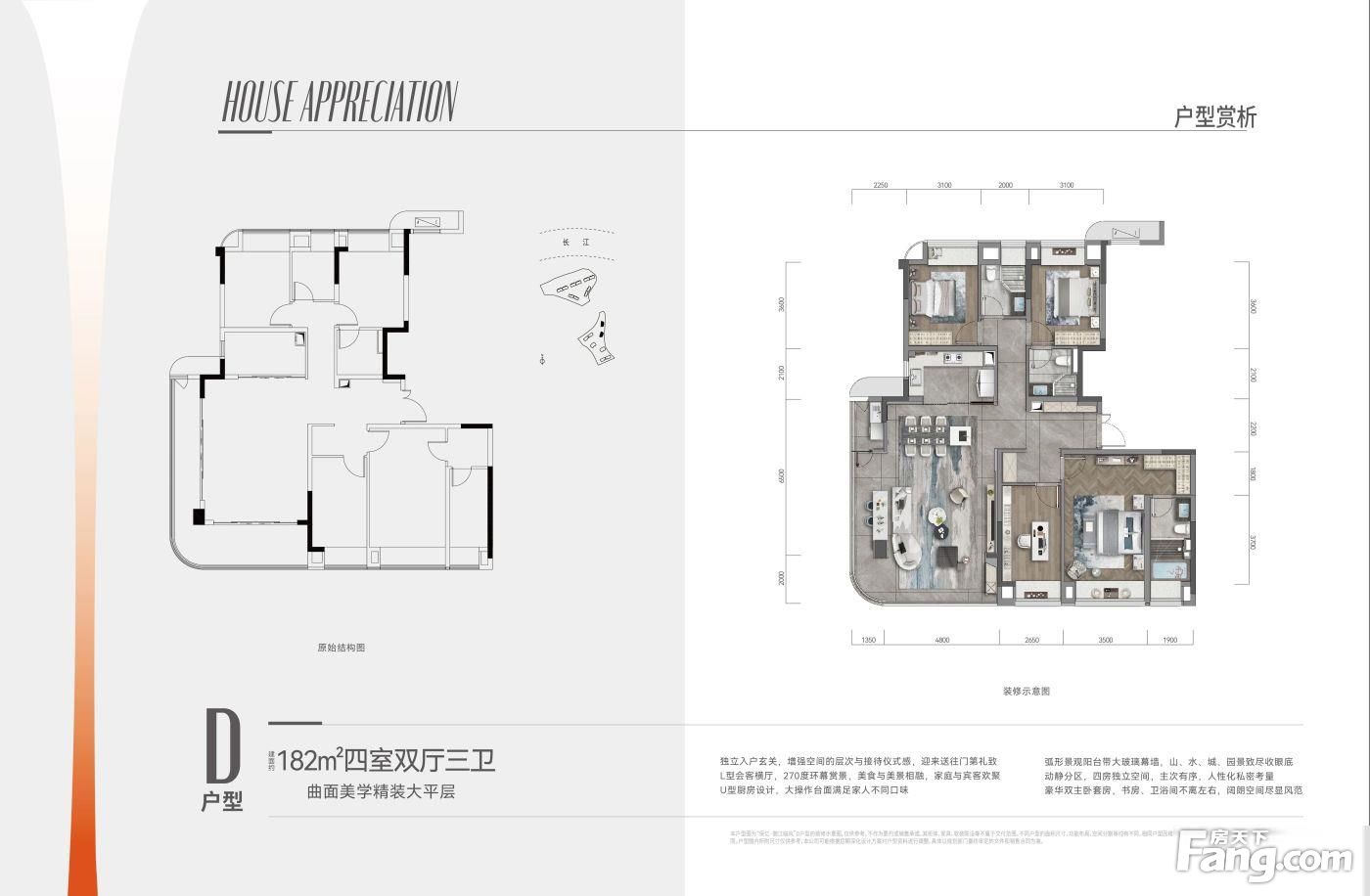 项目卖点: 1、重庆两江四岸城市核心,一线揽江精装大平层 2、香港十大建筑设计所DLN建筑设计 3、全金属铝板加玻璃幕墙设计 4、国际一线精装品牌(旭格/日立/ABB/博士/高仪/柏丽/德曼/迈迪龙/卡德维等) 5、三大城市泛会所配置(城市会客厅/童享玩乐场/长者全龄社交空间) 6、实景示范区及实体样板间呈现 7、双入户精装大堂礼制归家,溪景车库 8、南滨路文化居住带,背山面水,玉带环腰,绝佳 9、高端纯粹圈层社区(一期总201户) 10、3重景观:长江、南山、大沙溪