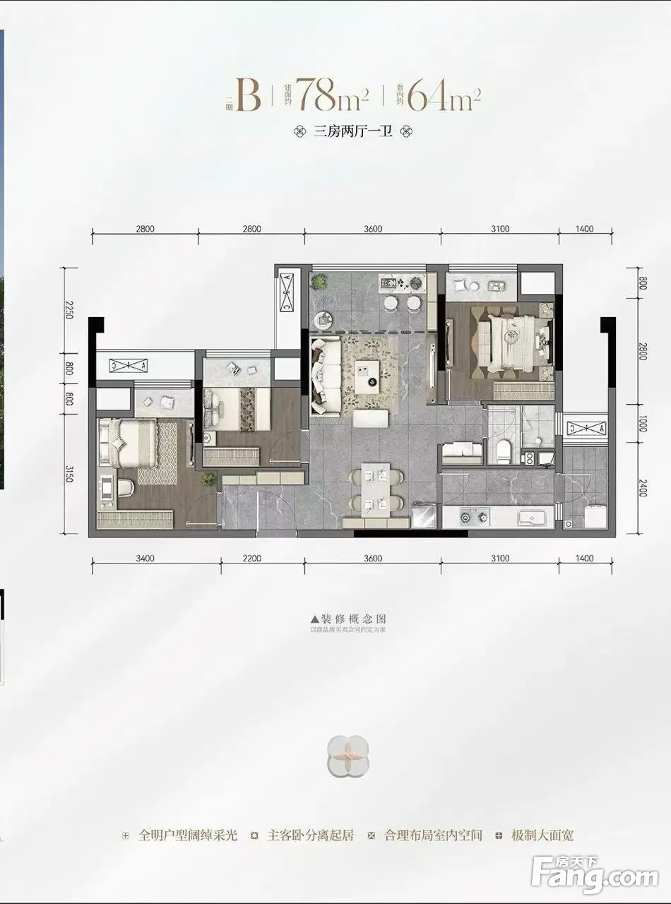 户型齐全,主打双卧朝南三居