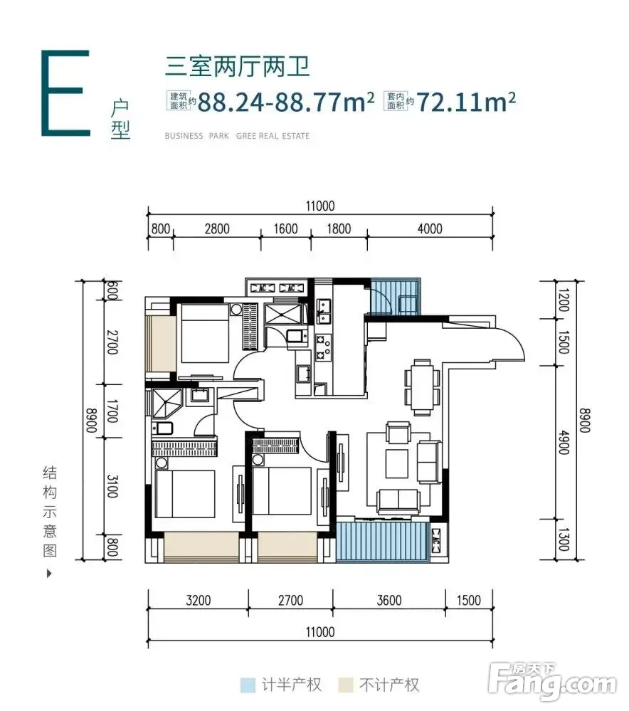 格力两江总部公园3期户型主要有78平-95平的全明格局,户型方正的三居 、57平-68平的户型方正,动静分离,采光充足的二居 。