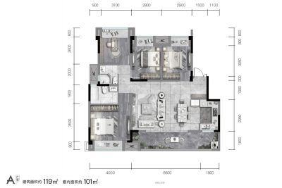 荣盛鹿山府户型主要有89平-97平的全明格局,户型方正的三居 、119平-119平的南北通透,全明格局的四居 。