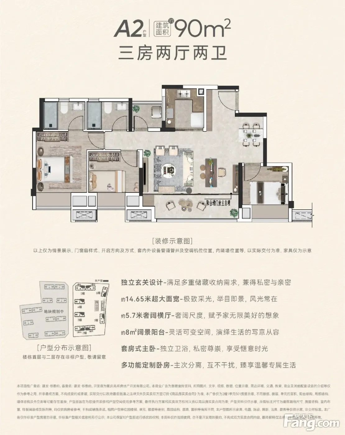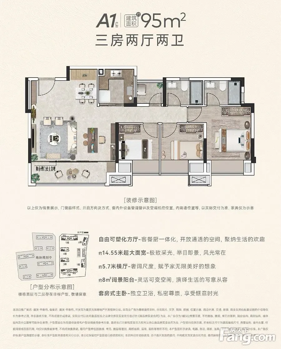 : 稀缺唐式风格项目,全重庆不超过5,而府是有性价比的! 背景:国企背景,品质保障,购买安心 位置:蔡家南蔡家嘴,湾区,宜居半岛 配套:周边成熟,配套齐,入住率高 新中式:王府中式,别人回家您回府 产品:精装,带中央空调/地暖/新风;也有清水,总价更低,多个选择 低总价:3/4房,小面积,大尺度 户型好:全横厅/方厅设计,均带书房,得房率高