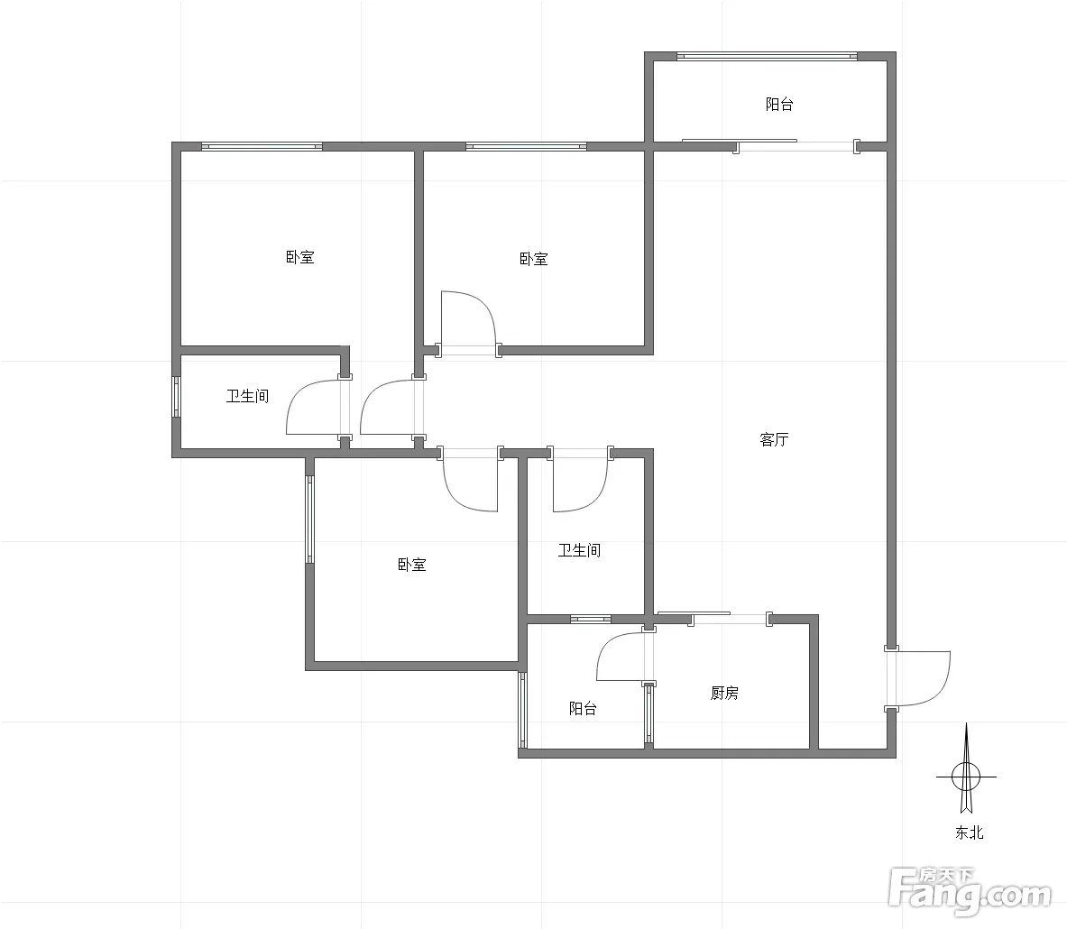 户型齐全,主打明卫,明厨,客厅朝南,双阳台三居
