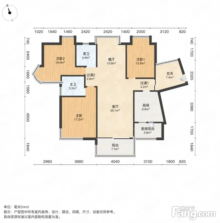 户型齐全,主打明卫,独立衣帽间,双阳台,主卧朝南二居