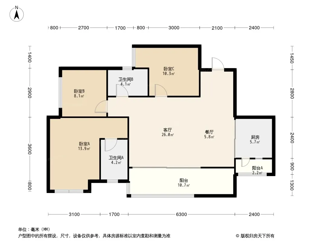 户型齐全,主打户型方正,采光充足三居