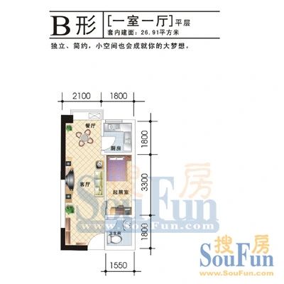 户型齐全,主打户型方正,明卫,明厨一居
