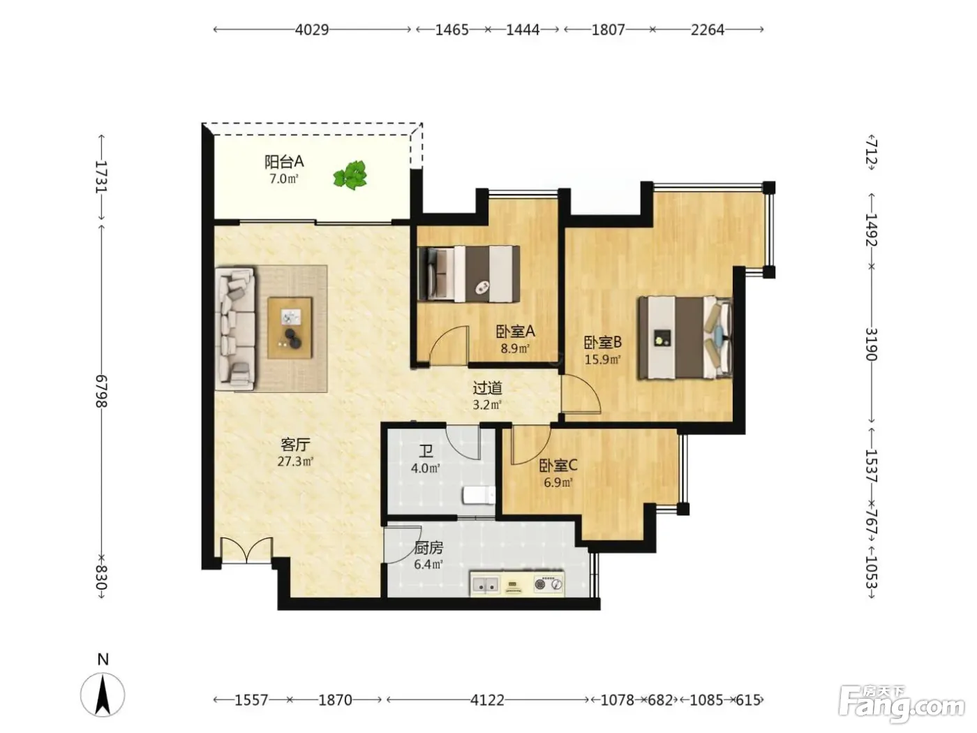户型齐全,主打明卫,客厅朝南,双阳台三居