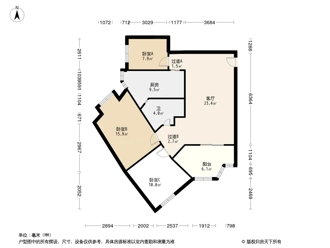 93.29平米的建筑面积规划出3室2厅的方正格局,南向采光让每个空间都充满阳光