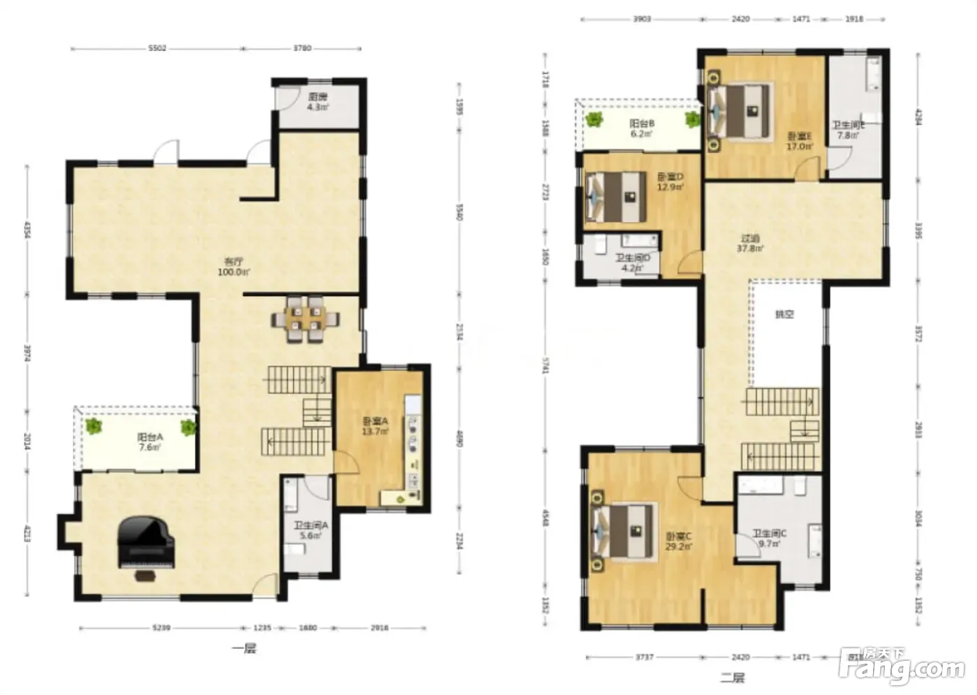 合院类独栋 双车位 地下室采光 位置安静 单层面积大。