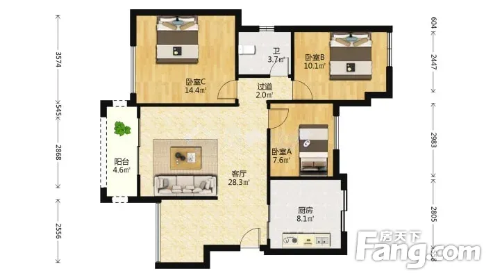 3室1厅2卫
