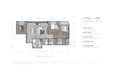 户型齐全,主打户型方正,动静分离三居