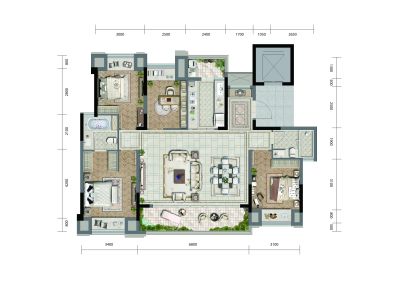户型齐全,主打户型方正,大面宽阳台四居