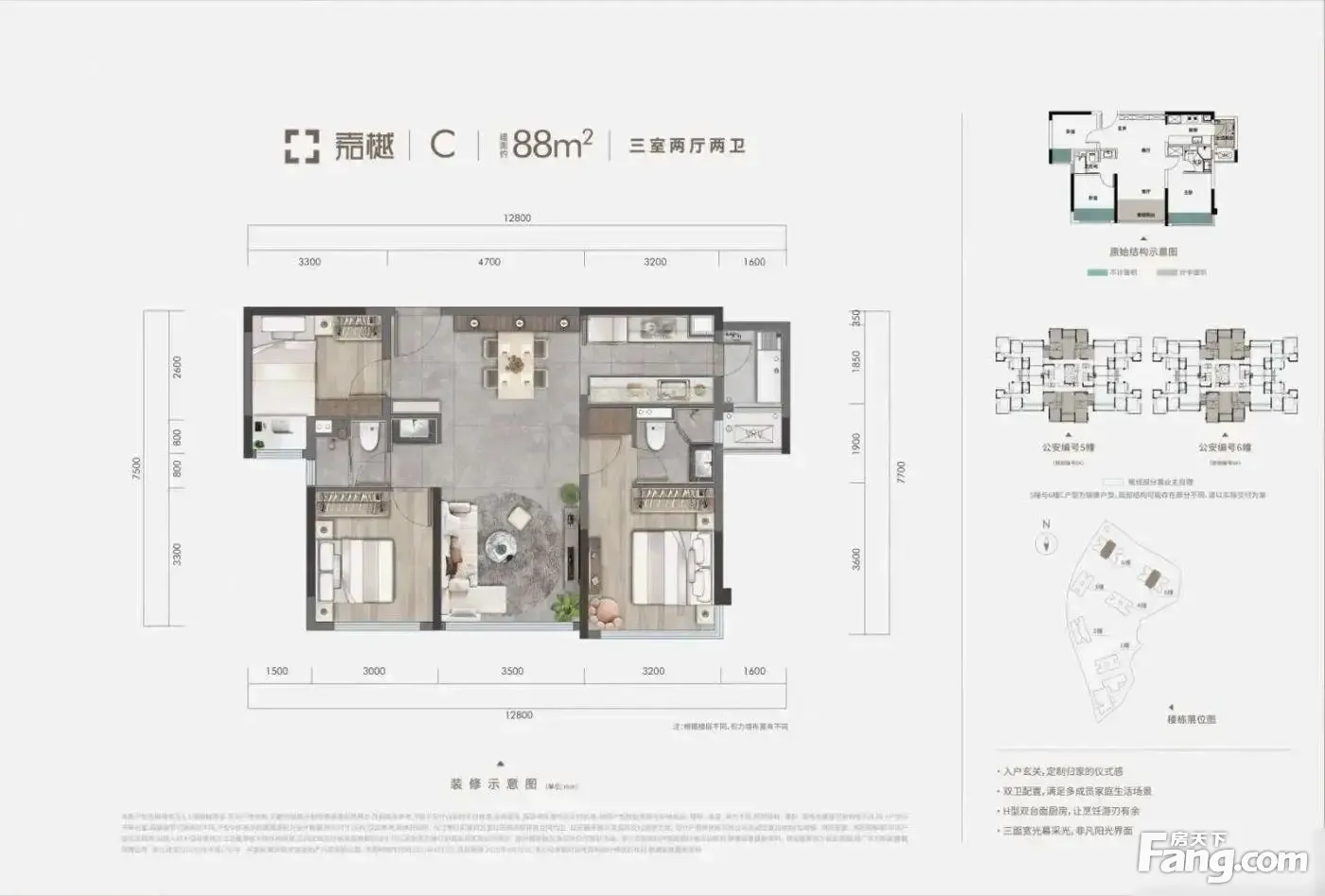 户型齐全,主打户型方正,动静分离三居