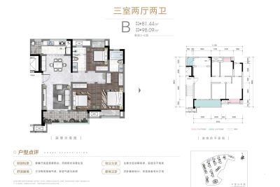 户型齐全,主打户型方正,动静分离三居